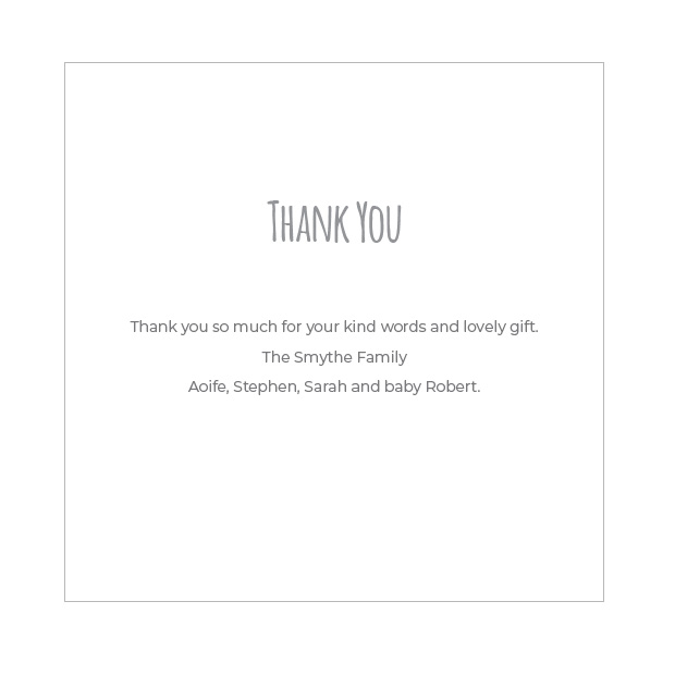 If you would like to make further bespoke changes beyond what our online designer system will allow or if you are having difficulty with the personalisation process. Simply email to us (support@yourbabythankyoucards.ie) your photos, text requirements and the name of your preferred card design and we will be delighted to provide you with a soft proof of your card without any obligation to buy.