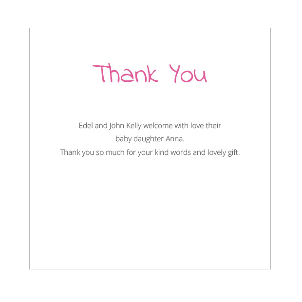 If you would like to make further bespoke changes beyond what our online designer system will allow or if you are having difficulty with the personalisation process. Simply email to us (support@yourbabythankyoucards.ie) your photos, text requirements and the name of your preferred card design and we will be delighted to provide you with a soft proof of your card without any obligation to buy.