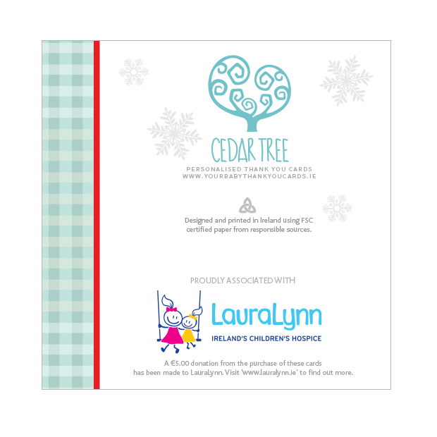Brrrrrrrrrrrrrrr – it’s cold outside but we are good and warm by the fire! A seasonal Christmas themed baby thank you card featuring one central photo upload area with some rather cold winter friends illustrated on the front and inside of the card. Suitable for boys & girls. Format: Folded Square