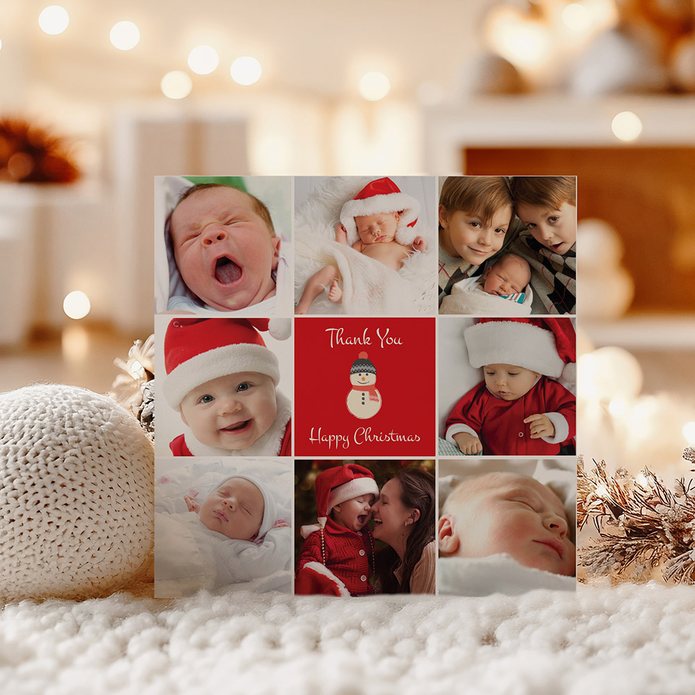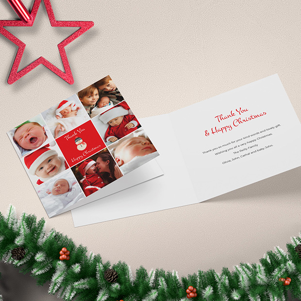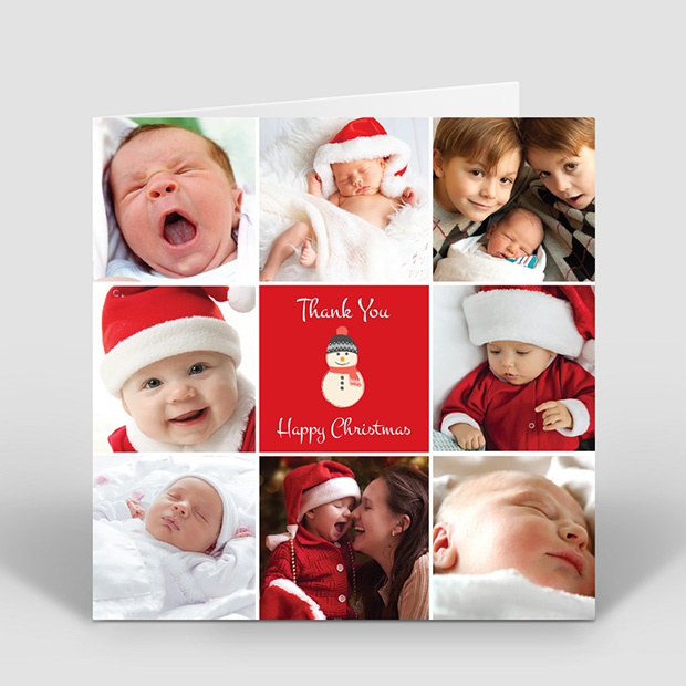 If you have a number of baby photos that you wish to use within your Christmas themed design, this card is an excellent option allowing for eight image uploads. Format: Folded Square