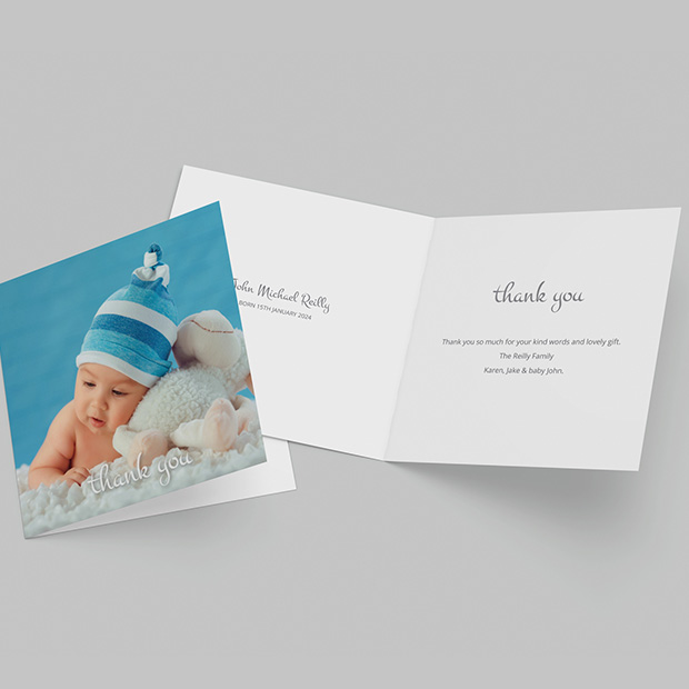 If you would like to make further bespoke changes beyond what our online designer system will allow or if you are having difficulty with the personalisation process. Simply email to us (support@yourbabythankyoucards.ie) your photos, text requirements and the name of your preferred card design and we will be delighted to provide you with a soft proof of your card without any obligation to buy.