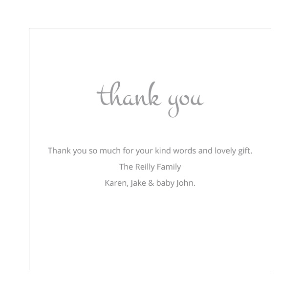 Simple, contemporary and timeless with a tasteful font carrying the main sentiment message. Your little boy is the main feature in this single photo baby thank you card design.