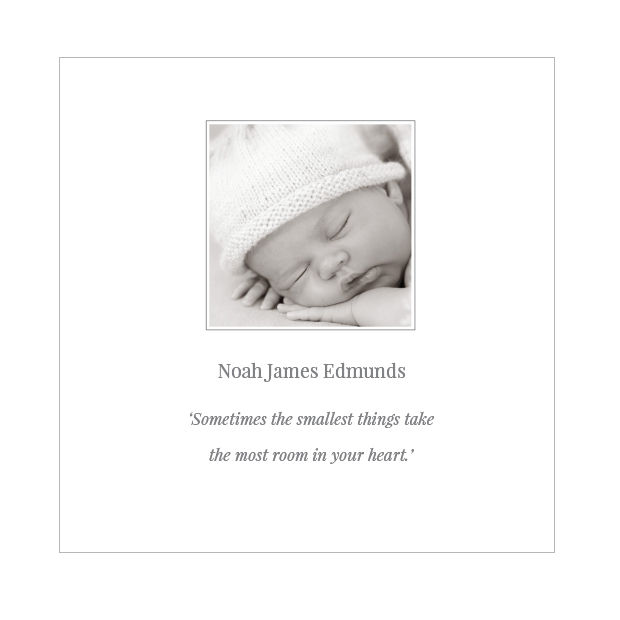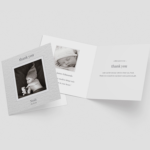 A lovely and simple contemporary design similar to a studio framed photo print. Featuring a ‘print effect’ textured background. Format: Folded Square