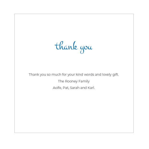If you would like to make further bespoke changes beyond what our online designer system will allow or if you are having difficulty with the personalisation process. Simply email to us (support@yourbabythankyoucards.ie) your photos, text requirements and the name of your preferred card design and we will be delighted to provide you with a soft proof of your card without any obligation to buy.