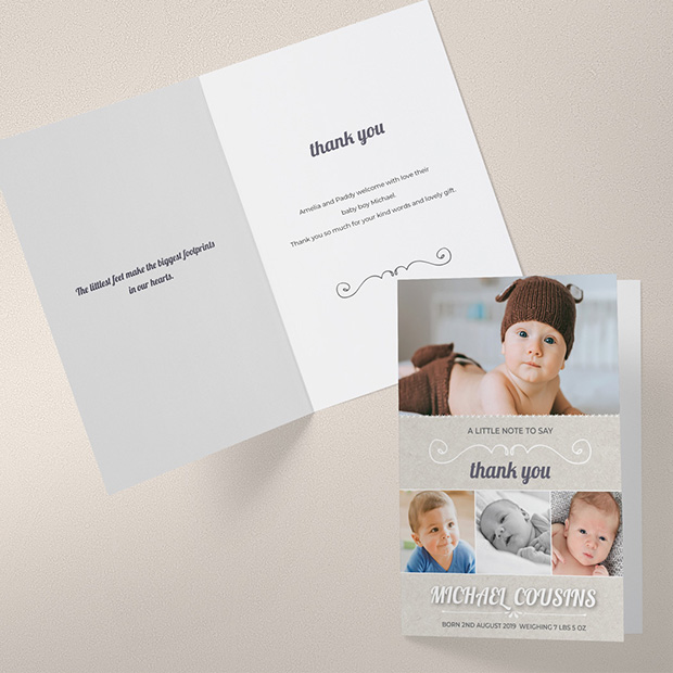 If you would like to make further bespoke changes beyond what our online designer system will allow or if you are having difficulty with the personalisation process. Simply email to us (support@yourbabythankyoucards.ie) your photos, text requirements and the name of your preferred card design and we will be delighted to provide you with a soft proof of your card without any obligation to buy.